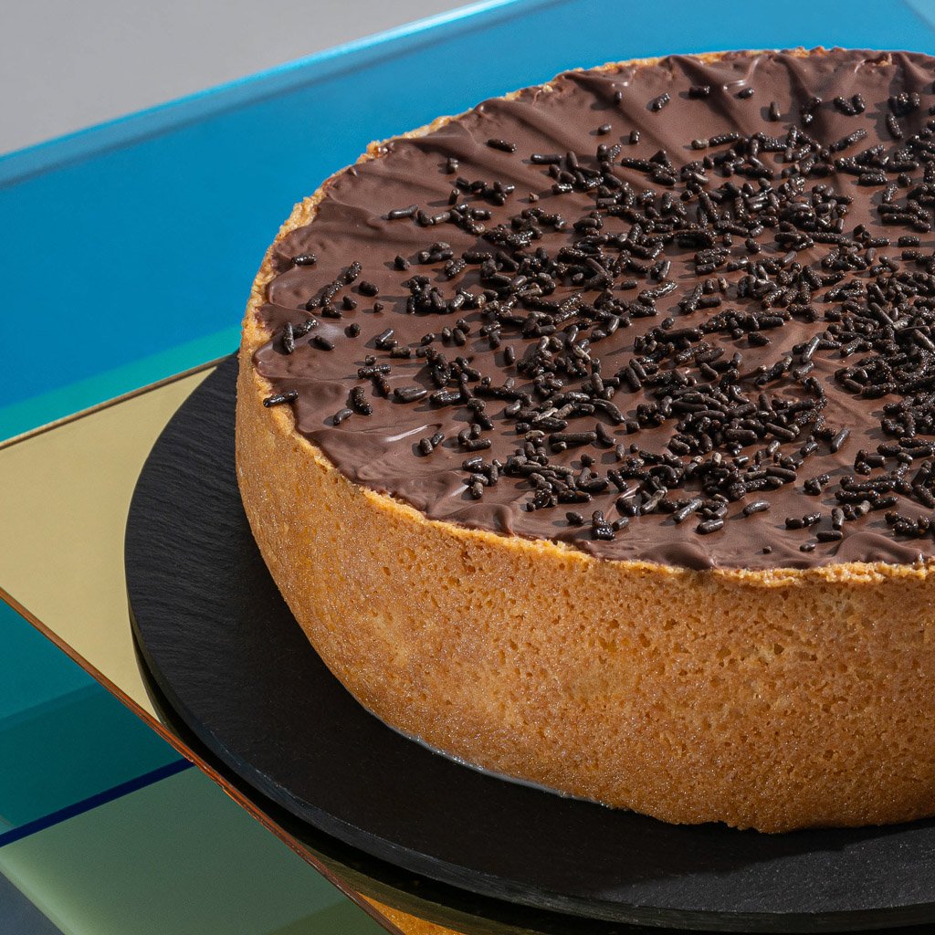 Delicioso pastel de vainilla mojado con nuestra receta de tres leches. Disfruta de su exquisita cubierta de ganache y granillo de chocolate. ¡Una delicia que no puedes resistir!