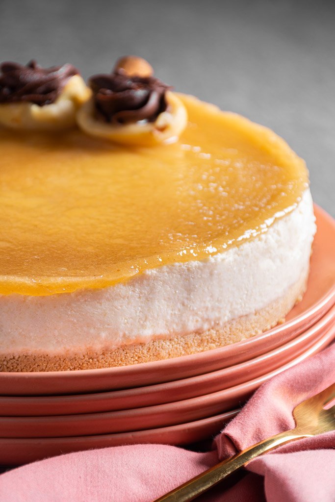Mousse de guayaba, montado sobre galleta de vainilla, decorado con una capa dulce de guayaba y tropiezos de guayaba. ¡El favorito de muchos!