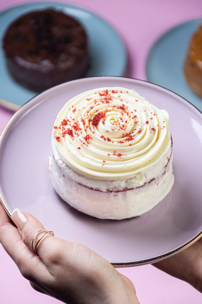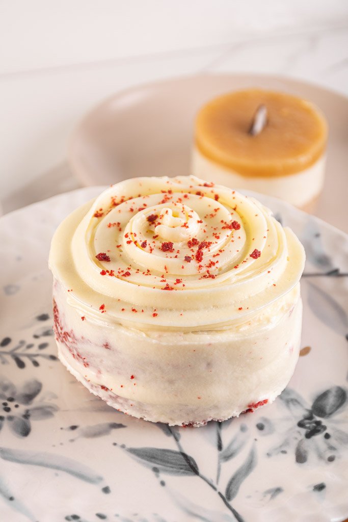 Esponjoso pan de vainilla con un toque de chocolate, relleno y decorado con irresistible betún de queso. Una combinación perfecta de sabores para disfrutar.