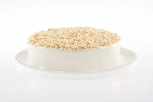 Delicioso pastel de vainilla mojado con nuestra receta de tres leches coco, cubierto con crema y crujiente streusel de coco. Un paraíso tropical en cada mordisco.