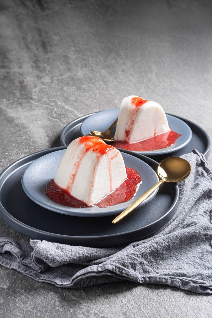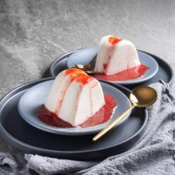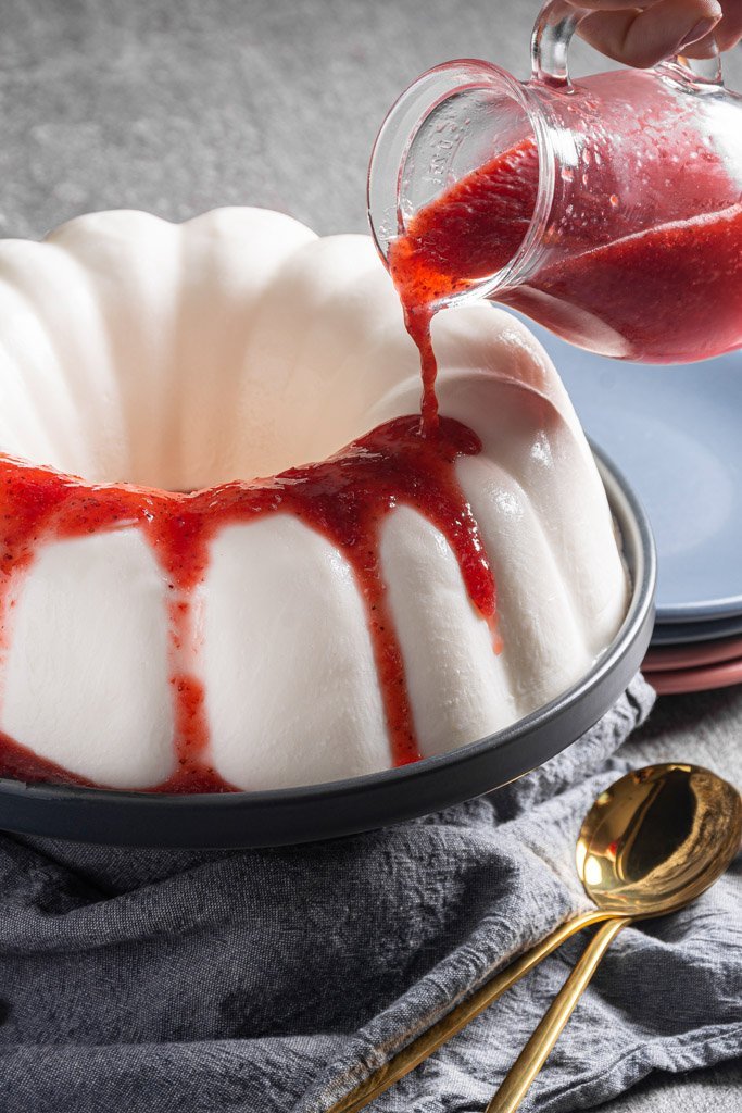 Gelatina de yogurt con salsa de fresa, un dúo delicioso que te sorprenderá con cada bocado. ¡Pruébala y enamórate!
