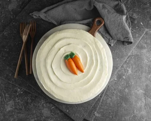 Pan de zanahoria rallada con nuez, piña y canela decorado con nuestro exquisito betún de queso. Perfecto para acompañar con café.