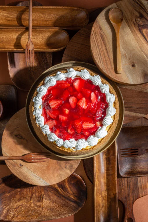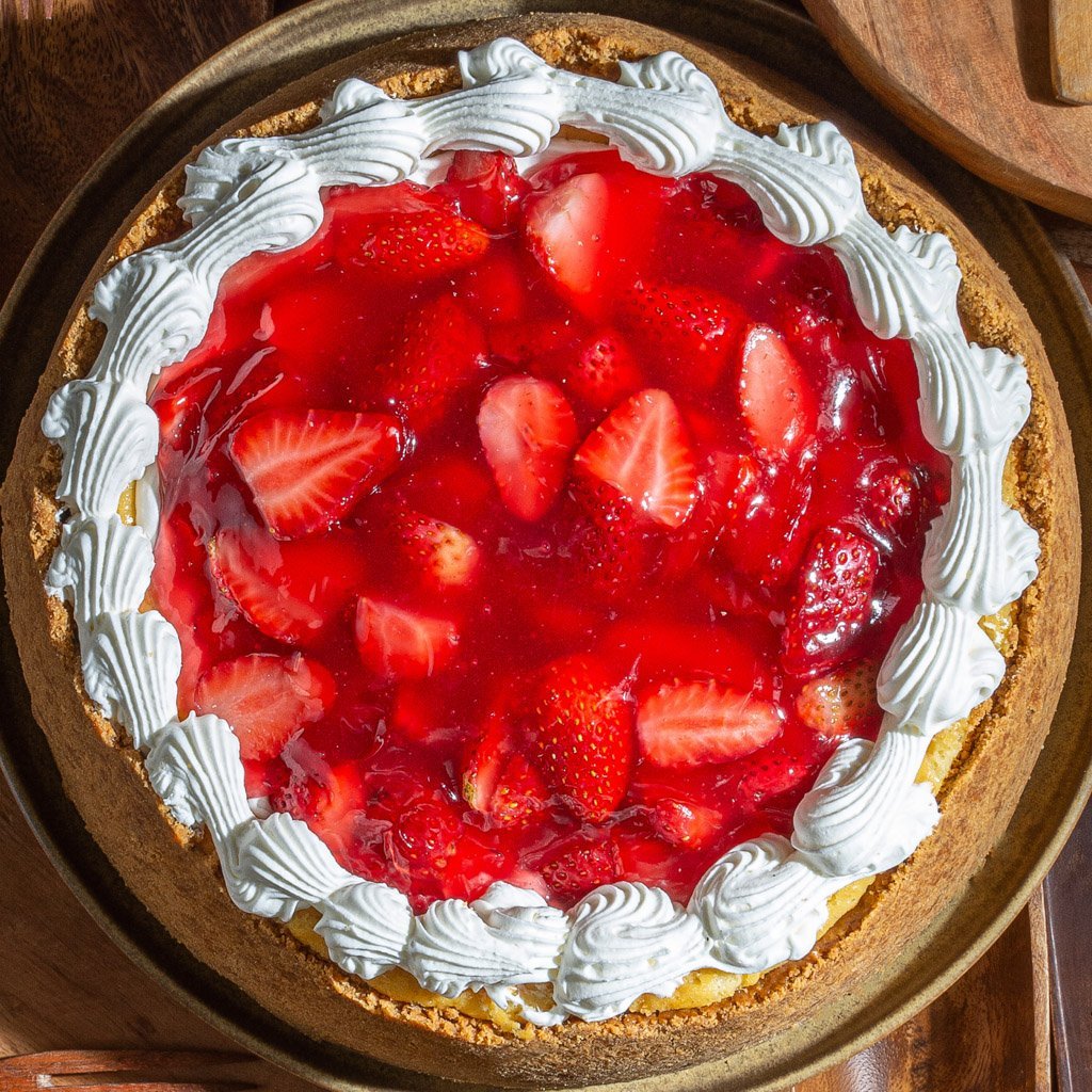 Crujiente base de galleta rellena con nuestra original receta de queso Vivián, cubierto con crema y fresas. ¡Te va a encantar!