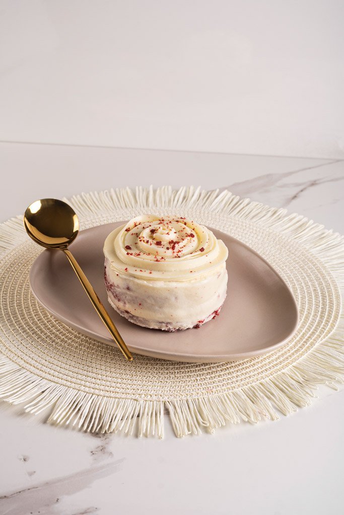 Esponjoso pan de vainilla con un toque de chocolate, relleno y decorado con irresistible betún de queso. Una combinación perfecta de sabores para disfrutar.