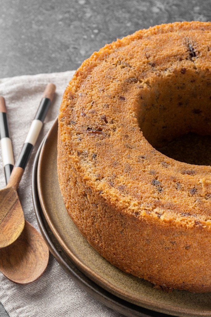Pan de mantequilla envinado y acompañado con nuez.