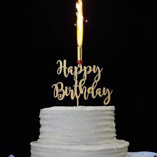 Topper para pastel con texto y vela luminosa.